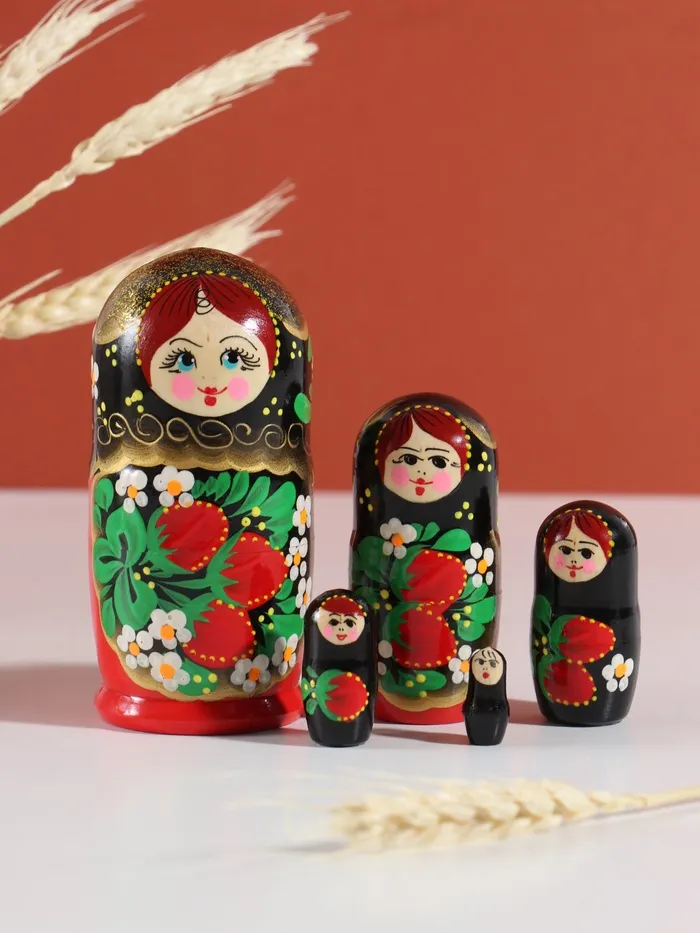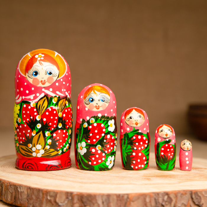 Матрёшка дерево 5-ти кукольная «Катя» ягоды, 12-13 см, ручная роспись.