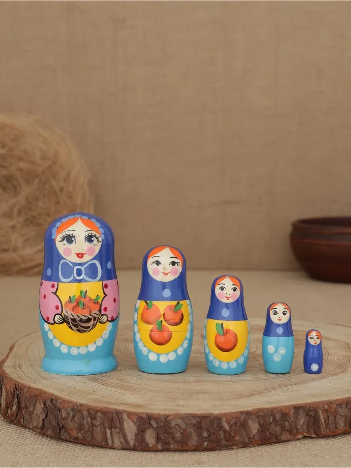 Матрёшка дерево «Любовь», синий платок, 5-кукольная, 19 см
