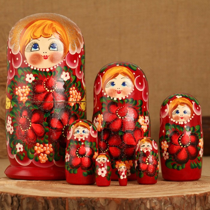 Матрёшка «Хохлома», красное платье, 10 кукольная, 26 см