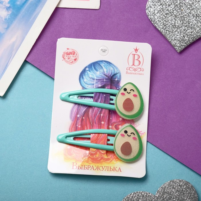 Заколки для волос Выбражулька «Абель», набор 2 шт., подмигивающий авокадо, 5 см, зелёные