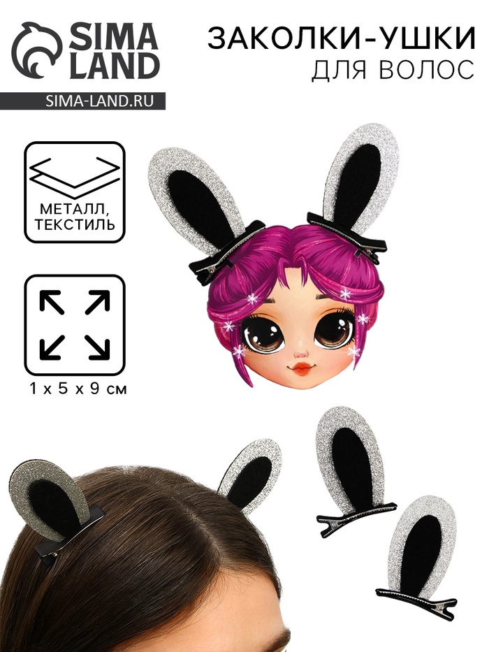 Заколки-ушки для волос «Девчуля», ушки зайки, 1×5×9 см