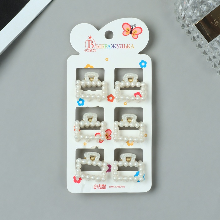 Крабики для волос Выбражулька «Авена», набор 6 шт., прямой, 2.5 см, белые