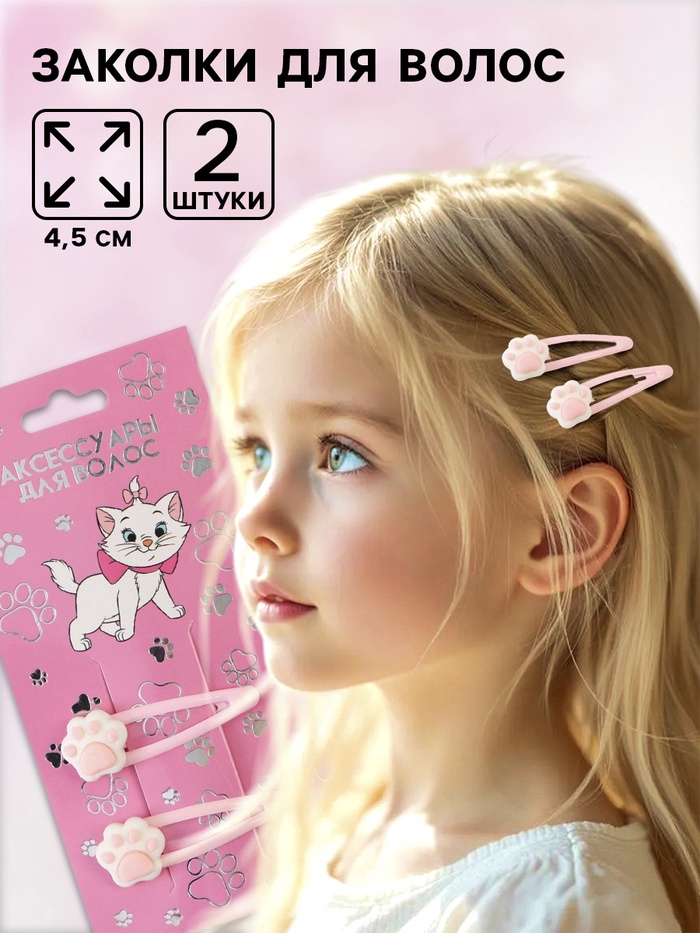 Заколка для волос «Лапки» розовые 2 шт., Коты аристократы