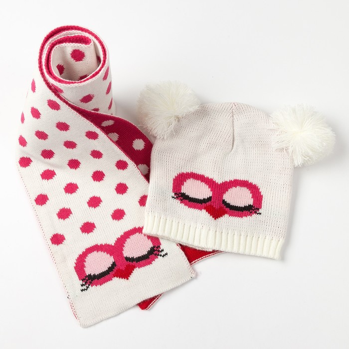 Комплект для девочки (шапка, шарф) MINAKU «Мордашка», размер 52-54, белый