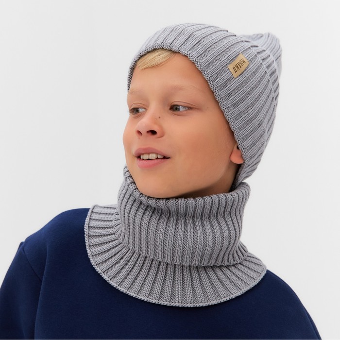Комплект детский (шапка, снуд), цвет серый, размер 52-56