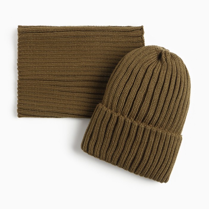 Комплект для девочки (шапка, снуд), цвет хаки, размер 50-54