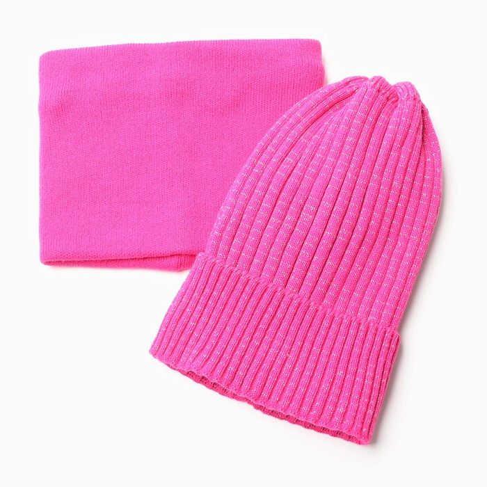 Комплект для девочки (шапка, снуд), цвет малиновый, размер 52-56