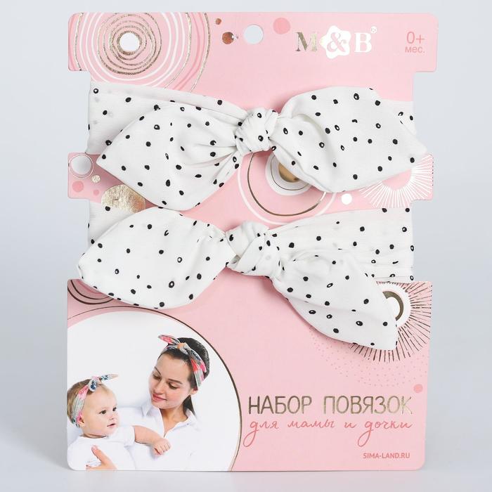 Набор повязок на голову для мамы и дочки «Белые в горошек», 2 шт.