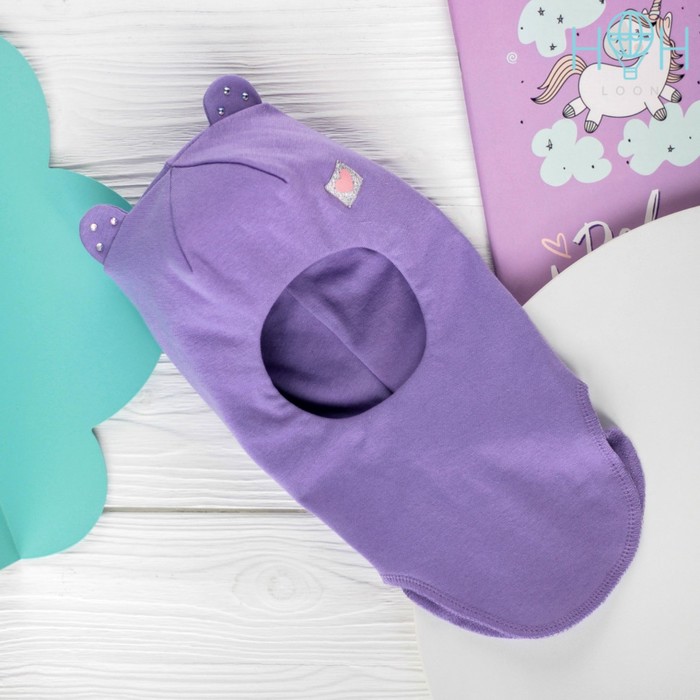 Шапка-шлем детский, цвет сиреневый/сердечко, размер 46-50
