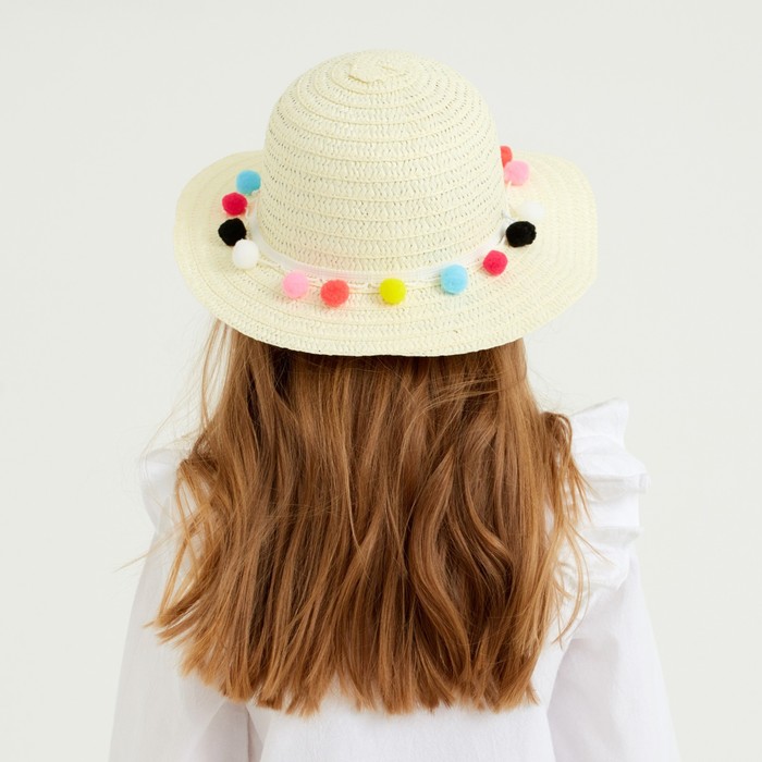 Шляпа с бомбошками для девочки MINAKU, размер 50, белая