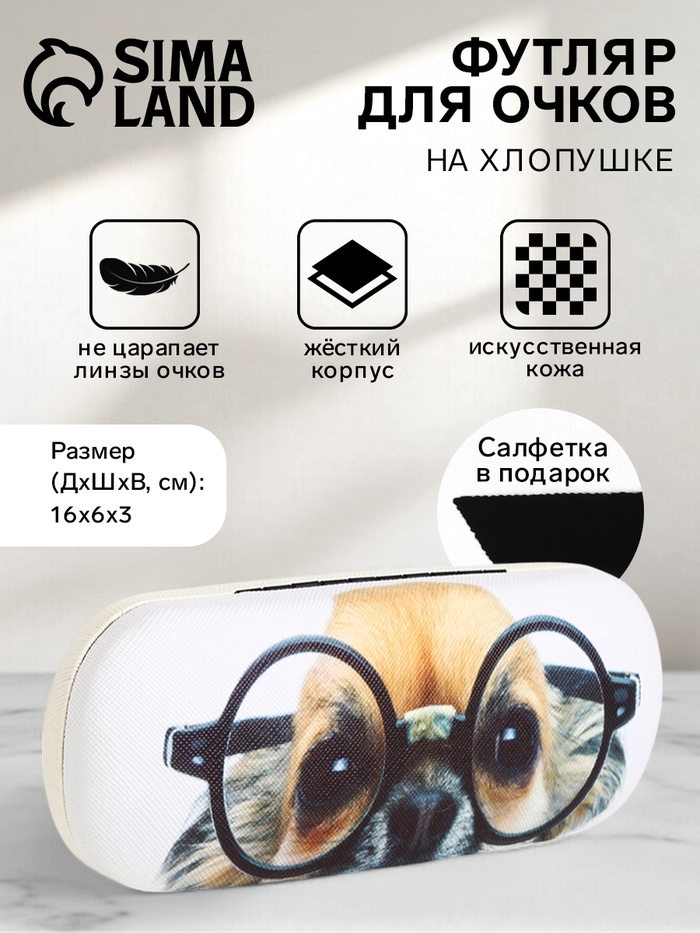 Футляр для очков на хлопушке «Умный пёс», длина 16 см, белый