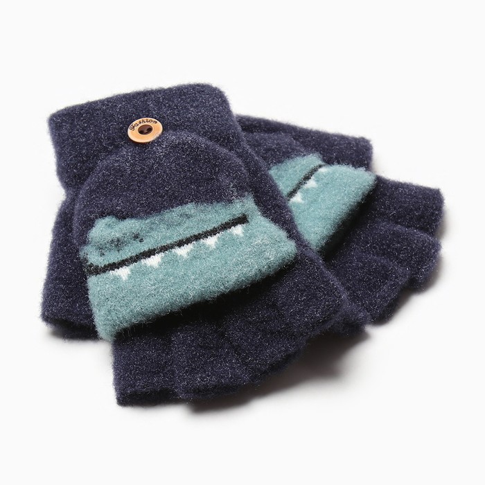 Перчатки детские, цвет тёмно-синий размер 18