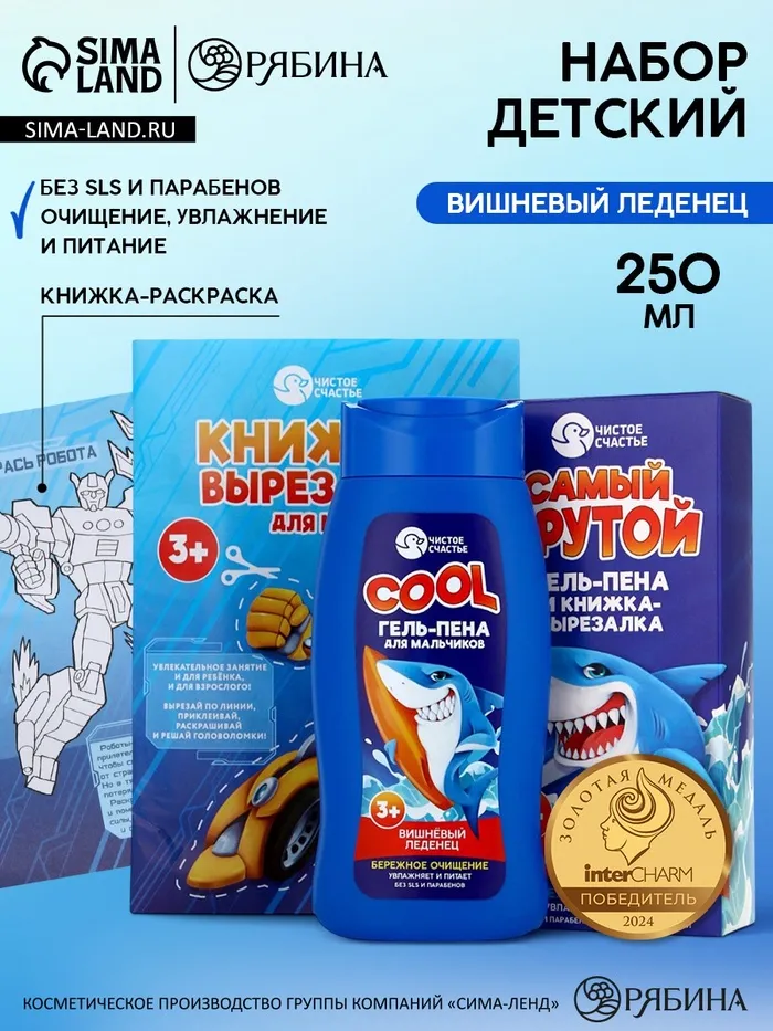 Подарочный набор детский «Самый крутой», гель-пена 250 мл, книжка-вырезалка А5, Чистое счастье