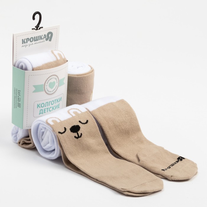 Колготки Крошка Я «Мишка», белый/бежевый, рост 74-80 см
