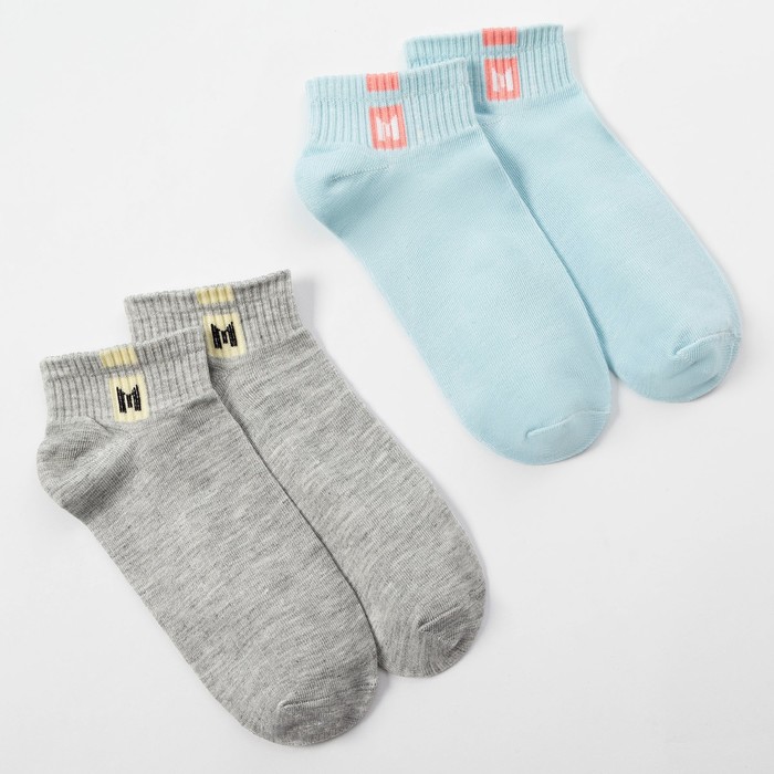 Носки детские 2 пары MINAKU «Однотонные», голубой, серый, размер 35-38 (22-24 см)