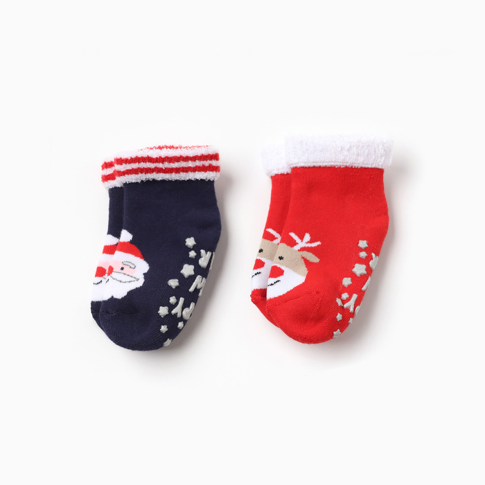 Носки детские махровые Крошка Я «Санта и помощники», набор 2 пары, размер 8-10 см