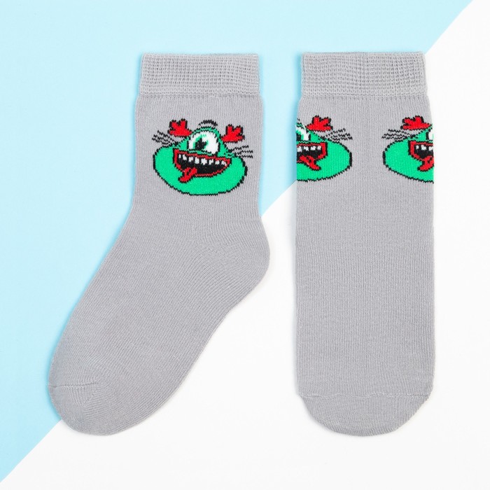 Носки детские KAFTAN «зелёный монстр», размер 14-16 см, цвет серый