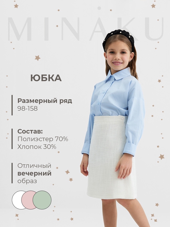 Юбка для девочки, MINAKU :Party Dress, цвет белый, рост 128 см