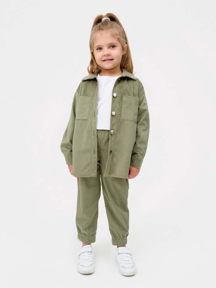 Костюм для девочки (рубашка и шорты) MINAKU, оливковый, рост 122-128 см