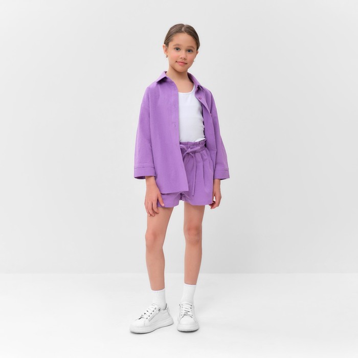Костюм для девочки (рубашка и шорты) MINAKU, сиреневый, рост 122-128 см