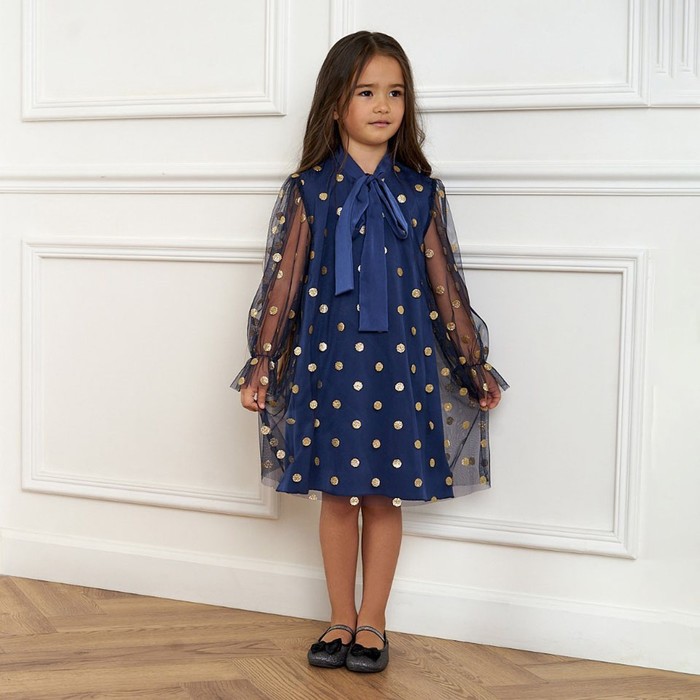 Платье нарядное для девочки KAFTAN в горошек, синее, рост 86-92 см