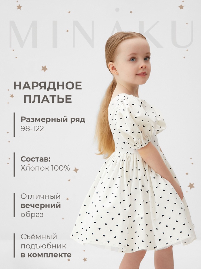 Платье нарядное детское MINAKU: PartyDress, цвет белый, рост 98 см