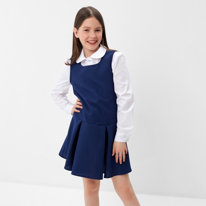 Сарафан школьный для девочек, цвет тёмно-синий, рост 134 см