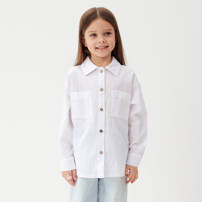 Рубашка для девочки KAFTAN Linen, размер 30 (98-104 см), белая