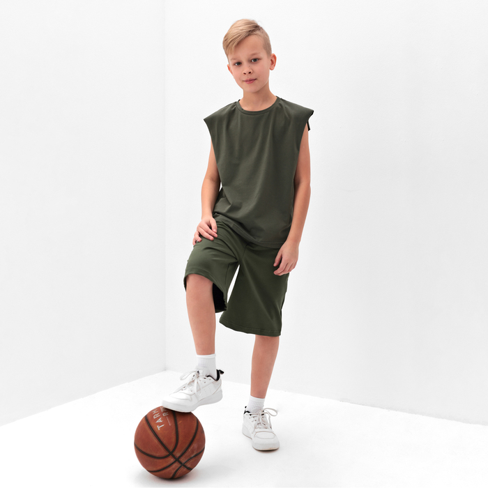 Комплект для мальчика (майка и шорты) MINAKU, хаки, рост 146 см