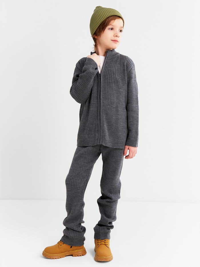Костюм детский вязаный (кофта и брюки) MINAKU, цвет графит, рост 128 см