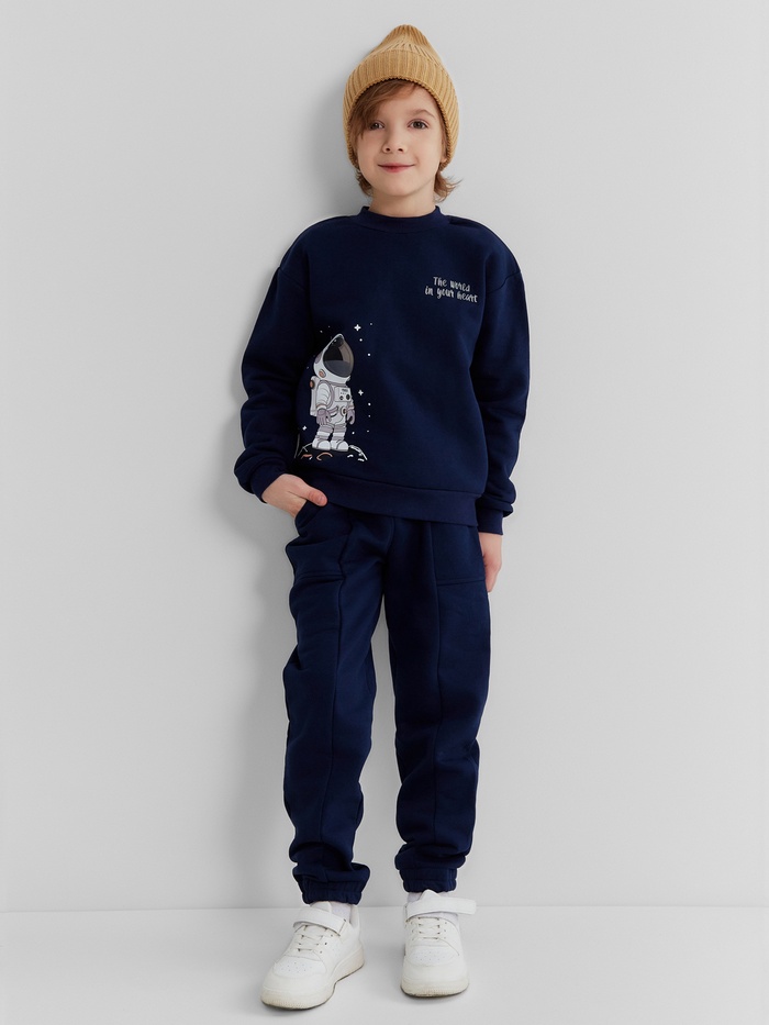 Костюм детский с начёсом (свитшот, брюки) MINAKU: astronaut, синий, рост 152 см