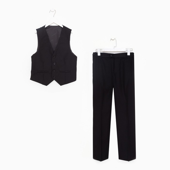 Костюм (жилет/ брюки) для мальчиков, цвет чёрный, рост 160см