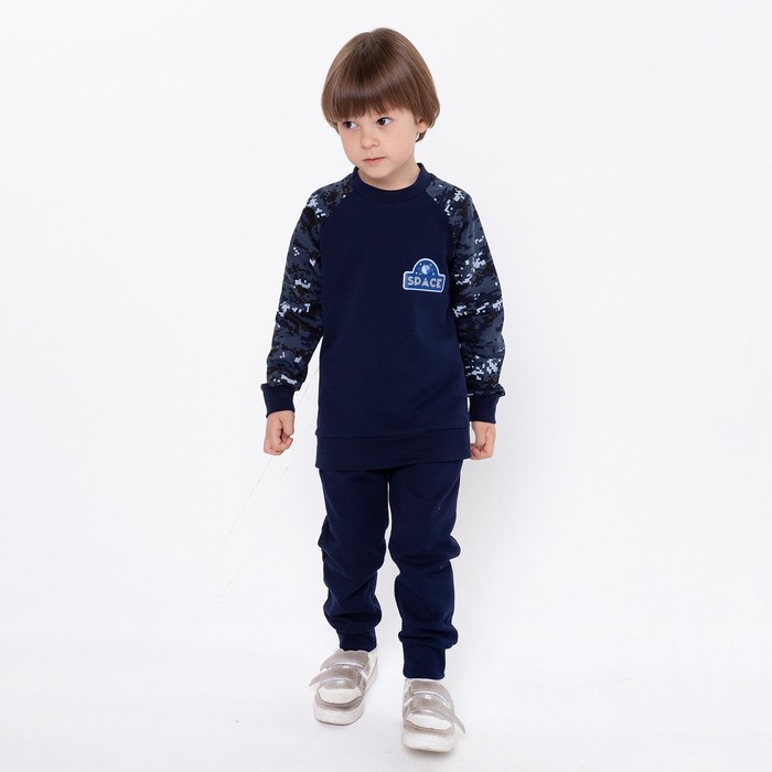 Спортивный костюм (толстовка, брюки) для мальчика, цвет синий камуфляж/тёмно-синий, рост 110 см (30)