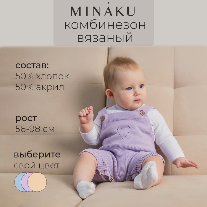 Комбинезон детский вязаный MINAKU, рост 56-62, лавандовый