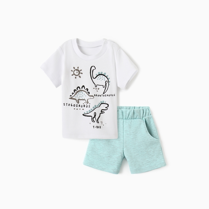 Костюм: футболка и шорты Крошка Я Dino, рост 68-74 см, голубой/белый