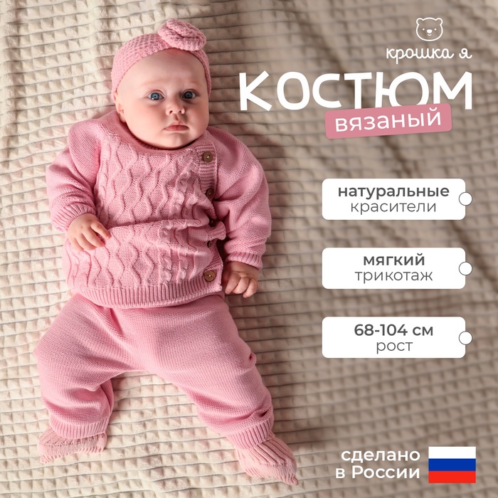 Комплект вязаный Крошка Я Cute, рост 86-92 см, розовый