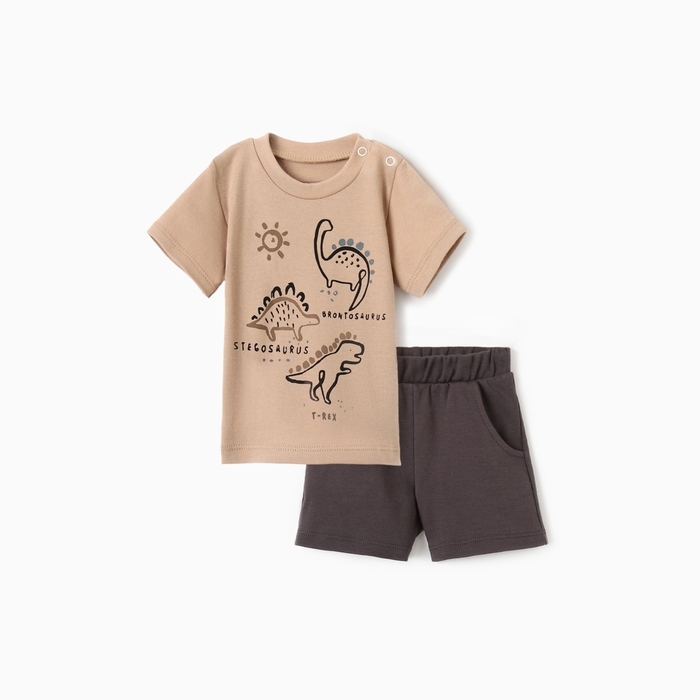 Костюм: футболка и шорты Крошка Я Dino, рост 74-80 см, бежевый/серый