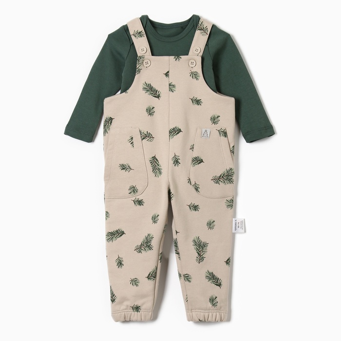Набор (боди и комбинезон) Крошка Я "Еловые веточки", рост 74-80 см