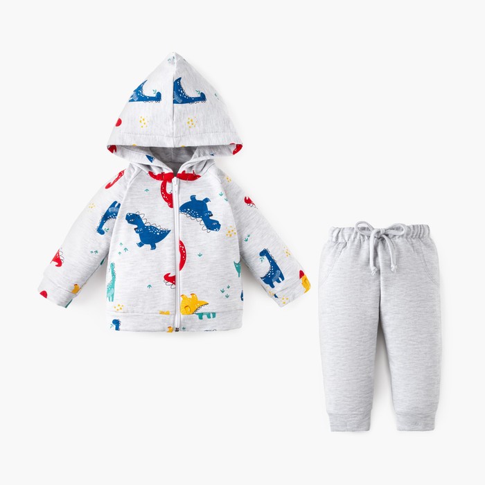 Комплект: худи и брюки Крошка Я "Dino", рост 68-74 см, цвет серый