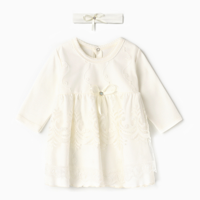 Платье и повязка Крошка, Я BASIC LINE, рост 68-74 см, молочный