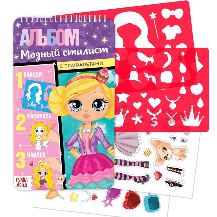Раскраска - альбом «Модный стилист», 72 стр., с наклейками и трафаретами