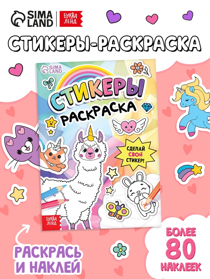 Книга «Стикеры раскраска. Сделай свой стикер!», 8 стр., более 80 наклеек