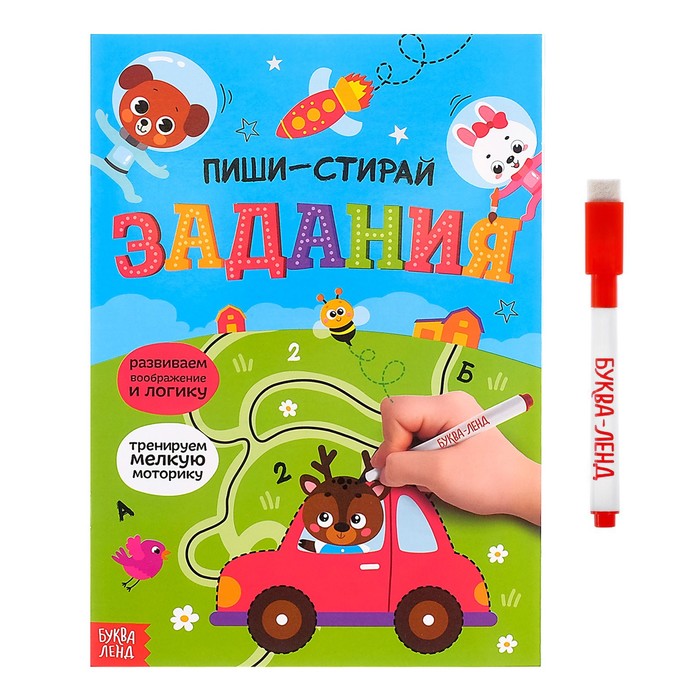 Книга многоразовая с маркером «Пиши-стирай. Задания», 12 стр.