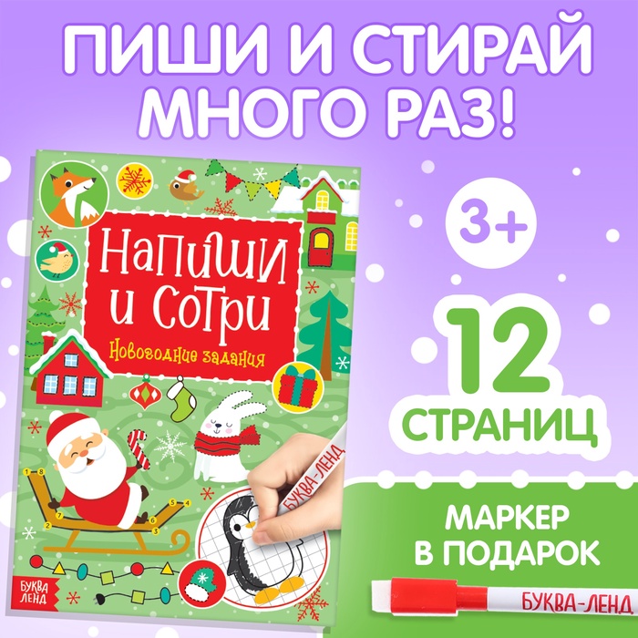 Книга многоразовая с маркером «Пиши-стирай. Новогодние задания», 12 стр.
