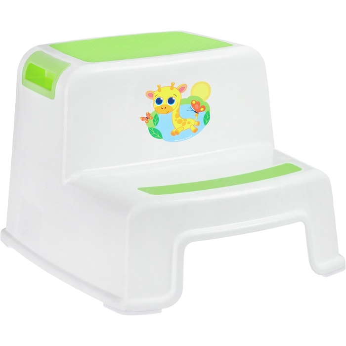 Табурет - подставка детский с прорезинеными ступеньками, белый/зеленый
