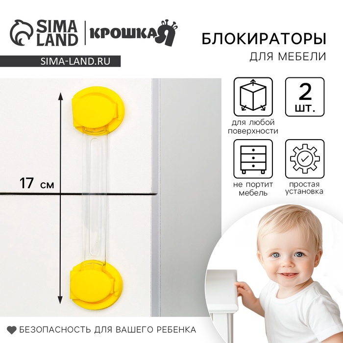 Набор блокираторов для дверей и ящиков Крошка Я, универсальные, гибкие, 2 шт., желтый