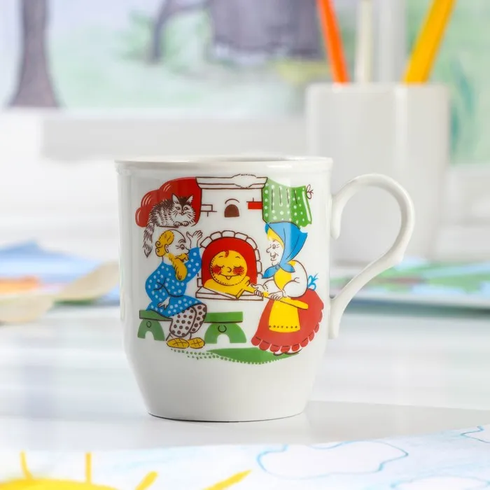 Кружка фарфоровая «Русское поле. Весёлый Колобок», 210 мл, d=7 см, рисунок МИКС