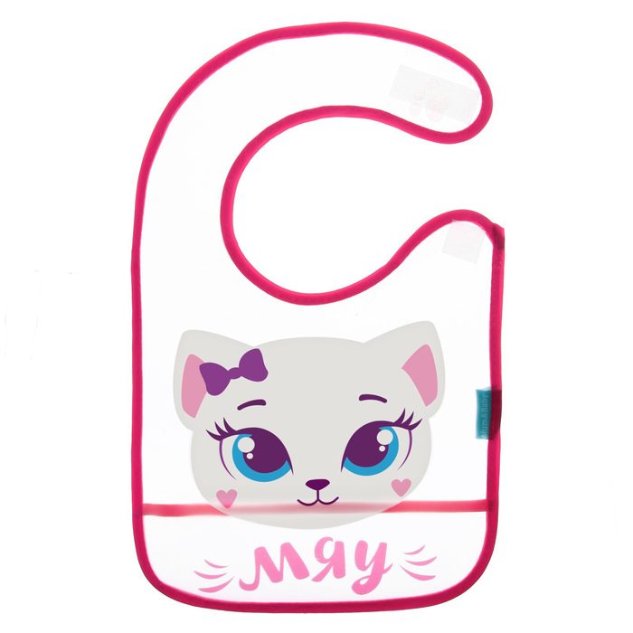 Нагрудник для кормления M&B «Котёнок» непромокаемый на липучке, с карманом, МИКС