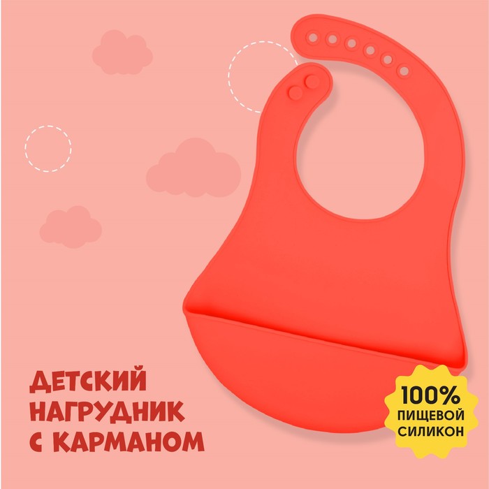 Нагрудник для кормления детский, силиконовый «Силикоша» с карманом, МИКС