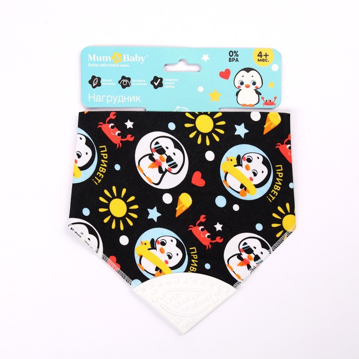 Нагрудник-бандана/слюнявчик для кормления M&B «ТРЕНД, Прингвин» непромокаемый с прорезывателем, на кнопке